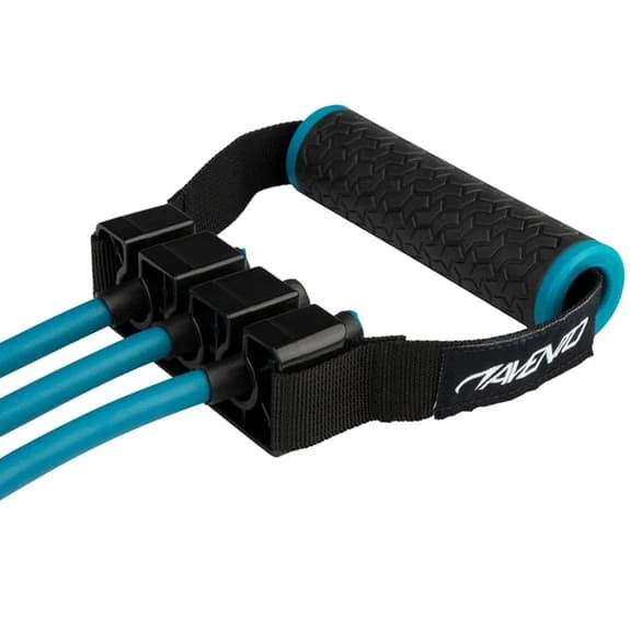 The Avento pectoral expander consists of three elastic tubes with a resistance of 8 kg per tube. This expander allows you to adjust the resistance to vary the intensity of your workout according to your goal.
