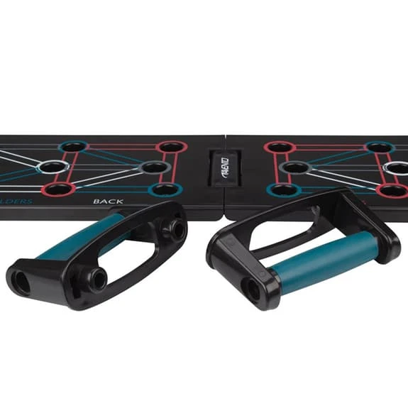 The Avento Push Up Table handles consist of a base plate with 8 holes on both sides for various exercises and a double handle. It is portable, foldable and easy to store.