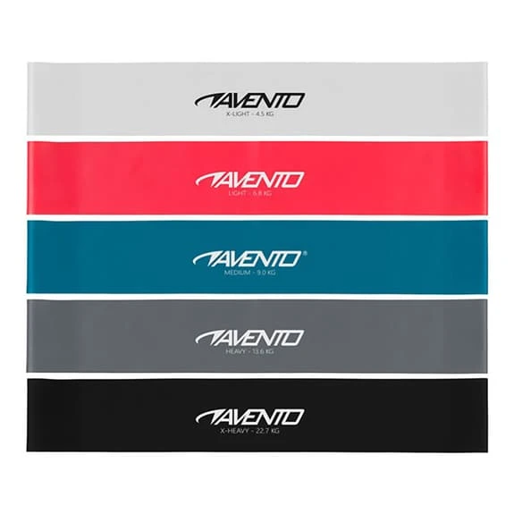The Avento resistance band set includes 5 bands of different thicknesses and resistances so you can exercise the force.