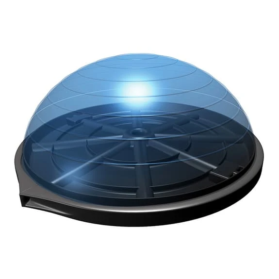 The Bosu Balance Trainer is an inflated rubber dome attached to a rigid platform that allows versatile training to improve balance, core stability and proprioception. It is made of a latex-free material and designed to support users weighing up to 140 kg.