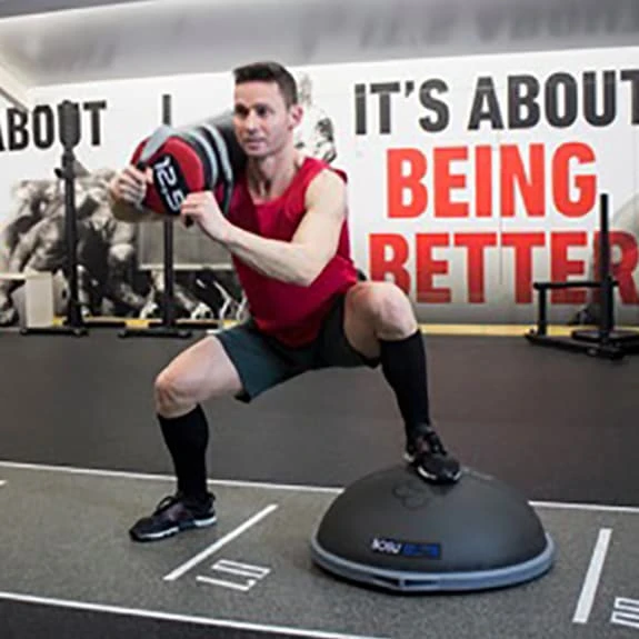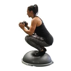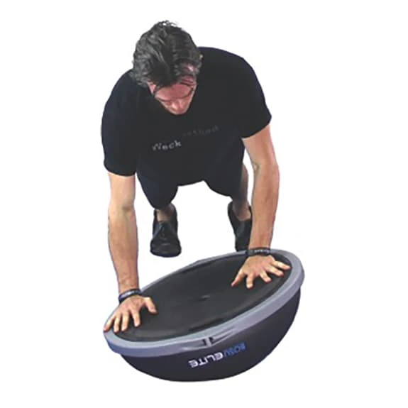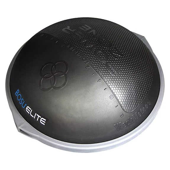 The Bosu Elite Balance Trainer helps improve athlete speed, power, body technique and balance, and can be supplemented with the new Weck Method training program. The elite Bosu incorporates a higher density dome and a specific area defined as “Power Line” and “Power Zone” to establish optimal body technique while performing advanced athletic exercises. This Bosu is available in black with non-slip honeycomb texture and incorporates a gray perimeter ring and double mold platform for greater strength. The base is soft and non-slip for greater safety.