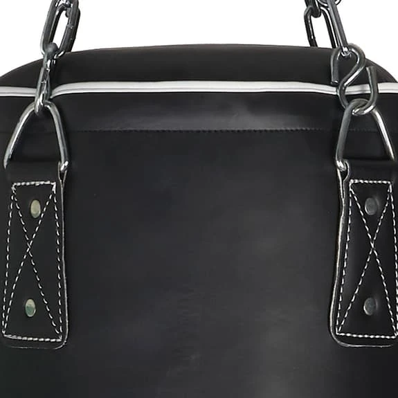 The Leone 1947 Basic Long punching bag is handmade and is ideal for all disciplines including kicking. Made of very resistant synthetic leather, it features a cotton inner padding, a zipper closure and chains to hang the bag.