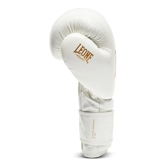 The Leone 1947 Black And White gloves are made of synthetic leather and have additional padding on the top of the cuff to protect the fighter’s wrist from impact.
