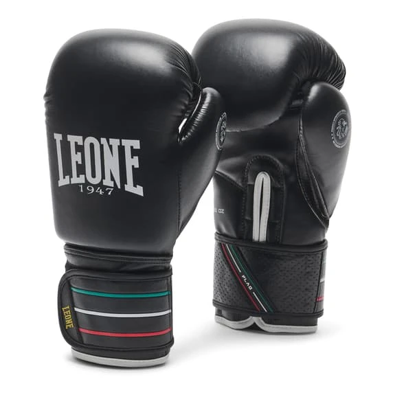 The Leone 1947 Boxing Flag Style 10 oz gloves have been made with an elegant and sober design. This new cut of the gloves ensures and protects the hands better. It also ensures a natural skin throughout the entire drip area to guarantee a longer life.