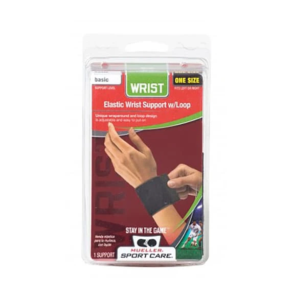 The Mueller Adjustable Textile Wrist Support is easy to put on and take off, thanks to its elastic velcro. Various degrees of compression can be adjusted with the wrap-around strap.