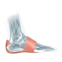 4. Form a cross with the two flaps around the back of your heel. Press the strip against the arch of your foot to ensure that the adhesive side bonds. If necessary, take a step and adjust the support strip/flap position.