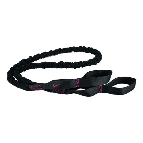 The Nike resistance band with integrated double handle is easy to hold and can support force up to 13.61 kg. Its construction means it can be stretched up to 4 times its length.ย