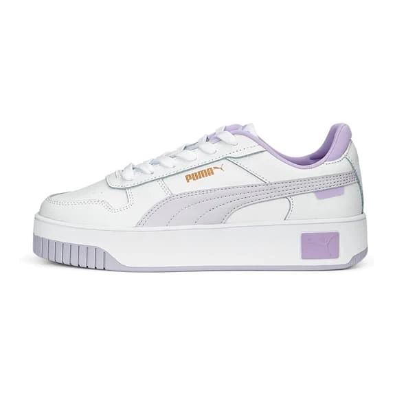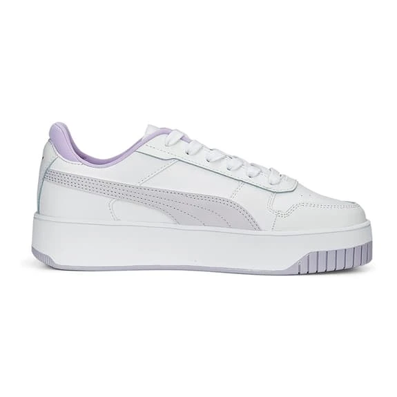 The Puma Carina Street women’s shoes for women have a streetwear-inspired design combined with an authentic platform profile, providing the perfect choice for your everyday attire. The leather upper is inspired by street style, with an overlapping toe cap and a touch of basketball. It is accented by a perforated upper and a synthetic leather Puma Formstrip. The highlight of these shoes is the new cupsole design, with a slightly raised platform sole and an interesting texture in the toe and heel area. The SoftFoam+ footbed provides superior cushioning and optimal comfort for every step of the day.