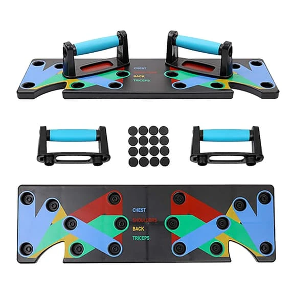 The Softee Push Up Board grips form an innovative colour-coded training system that strengthens and shapes your entire upper body (chest, shoulders, back, and arms).
