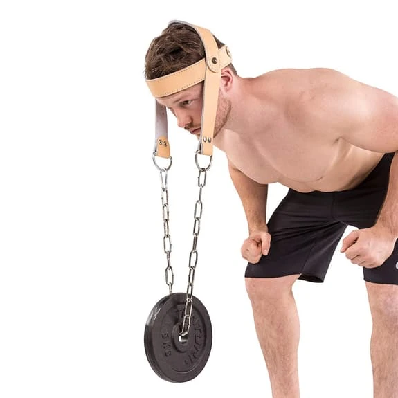 The Tunturi Neck weighted belt is made of genuine leather, has a sturdy chain and strong fasteners. Place the belt on your head, then attach a disc to the chain and put those neck muscles to work.