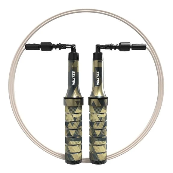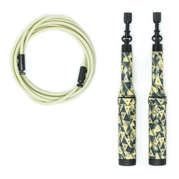 The Velites Earth 2.0 skipping rope is a redesigned and reinvented version of the skipping rope we all know and love. Designed for all audiences, easy to use and fun. It is a complete training system for speed and strength training. This is the rope you were looking for. With 3 different cables to choose from and our quick-change system, you can go from doing double jumps at full speed to working on muscle development with the heavy cable in just a few seconds. Multiplies by 5 the weight of your camber in seconds. Simply add weights and change ropes to go from 200 g to over 1 kg in weight.