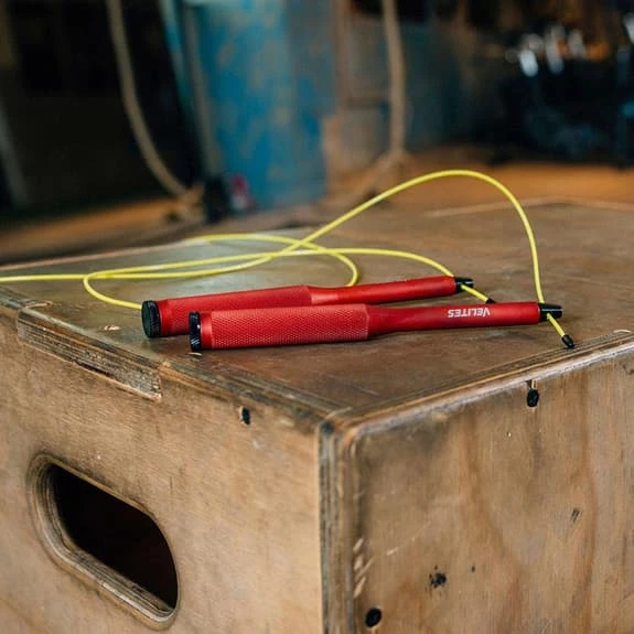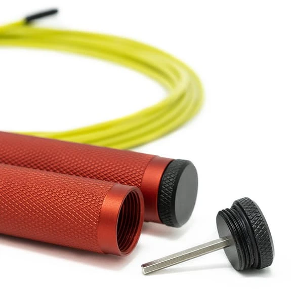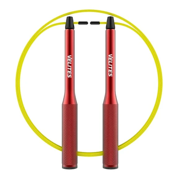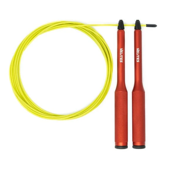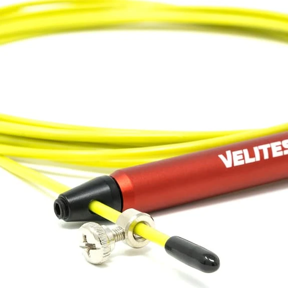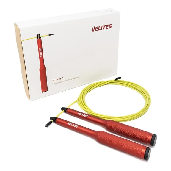 The Velites Fire 2.0 skipping rope is the lightest competition jump rope ever built in aluminum. Thanks to its 3.5 meters of cable and the adjustment system included in the handle, it is very easy to adapt the length according to your height. Handle section changes and a rough weightlifting barbell finish allow for a comfortable and firm grip. Improve the technique of double and triple jumps and increase the hardness of your training with weights.