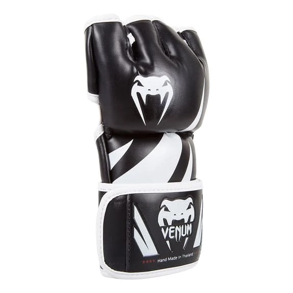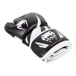 The Venum MMA Challenger gloves are perfect for training in the gym or fighting in the ring. The double lid closure system provides easy access and a perfect fit, ensuring exceptional comfort and better support. Extensive leather velcro closure prevents the risk of wrist injury. Each finger and thumb opening is reinforced, absorbing every shock of every blow.